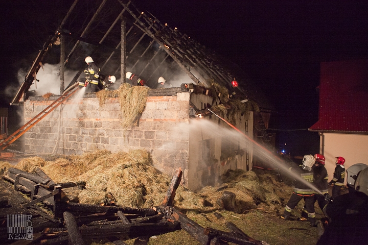 Do kolejnego pożaru stodoły doszło 27 grudnia ok. godz 18:25 w miejscowości Chyszówki. Z naszej jednostki na miejsce udały się 2 zastępy GBARt 2/24 MAN oraz GBARt 2/16 DENNIS. Działania na miejscuw początkowej fazie polegały na obronie budynku mieszkalnego oraz zorganizowaniu zasilania wodnego,a następnie dogaszeniu pożaru. Ze względu na dużą ilość zgromadzonego siana oraz drewna opałowego działania zakończono po północy.