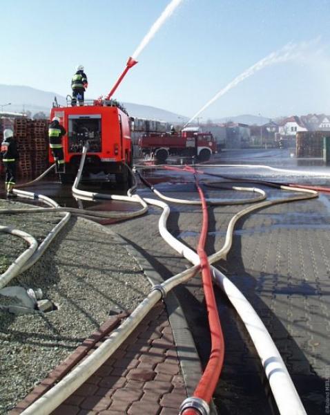 Zdjęcia przedstawiają przebieg ćwiczen jakie odbyły się na terenie zakładu Tymbark SA.